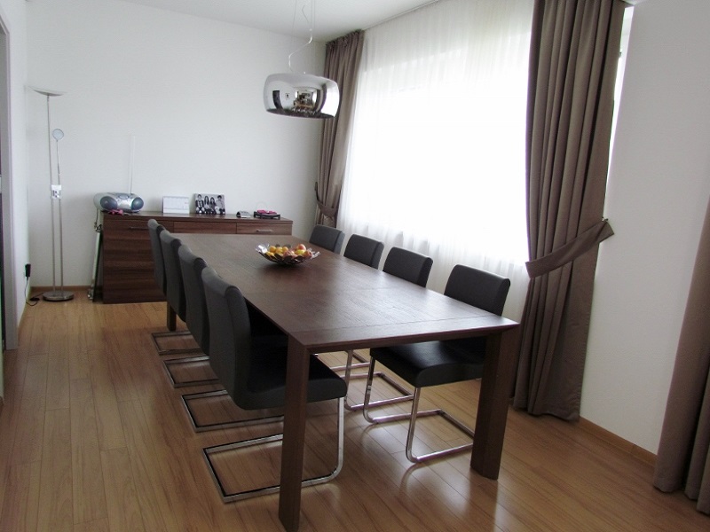 Požiadavkou klientky bolo vytvoriť moderný a zároveň útulne pôsobiaci interiér dennej časti rodinného domu. Nakoľko priestor bol veľkorysý a dobre osvetlený bolo možné použiť aj tmavšie kontrastnejšie materiály.